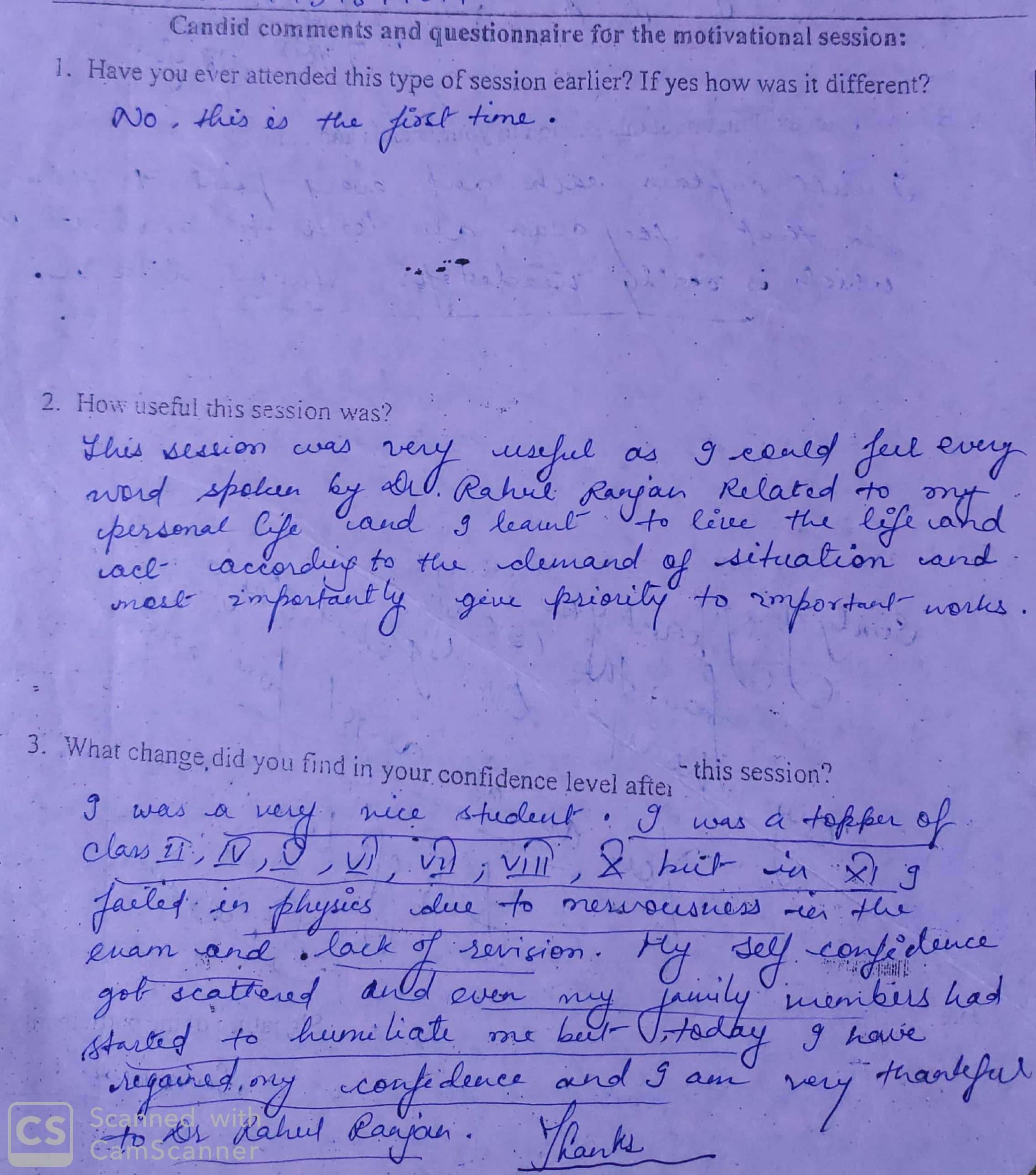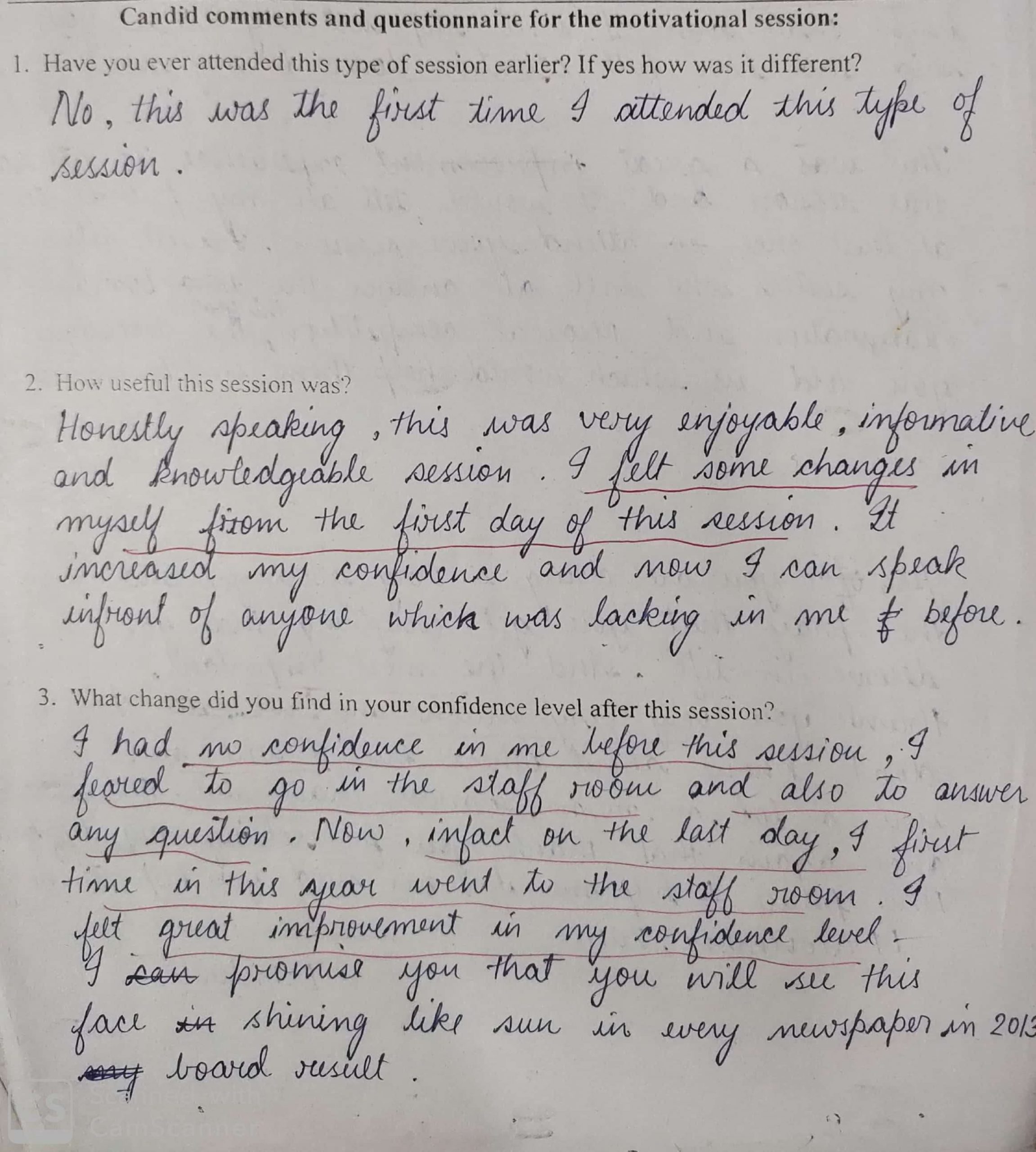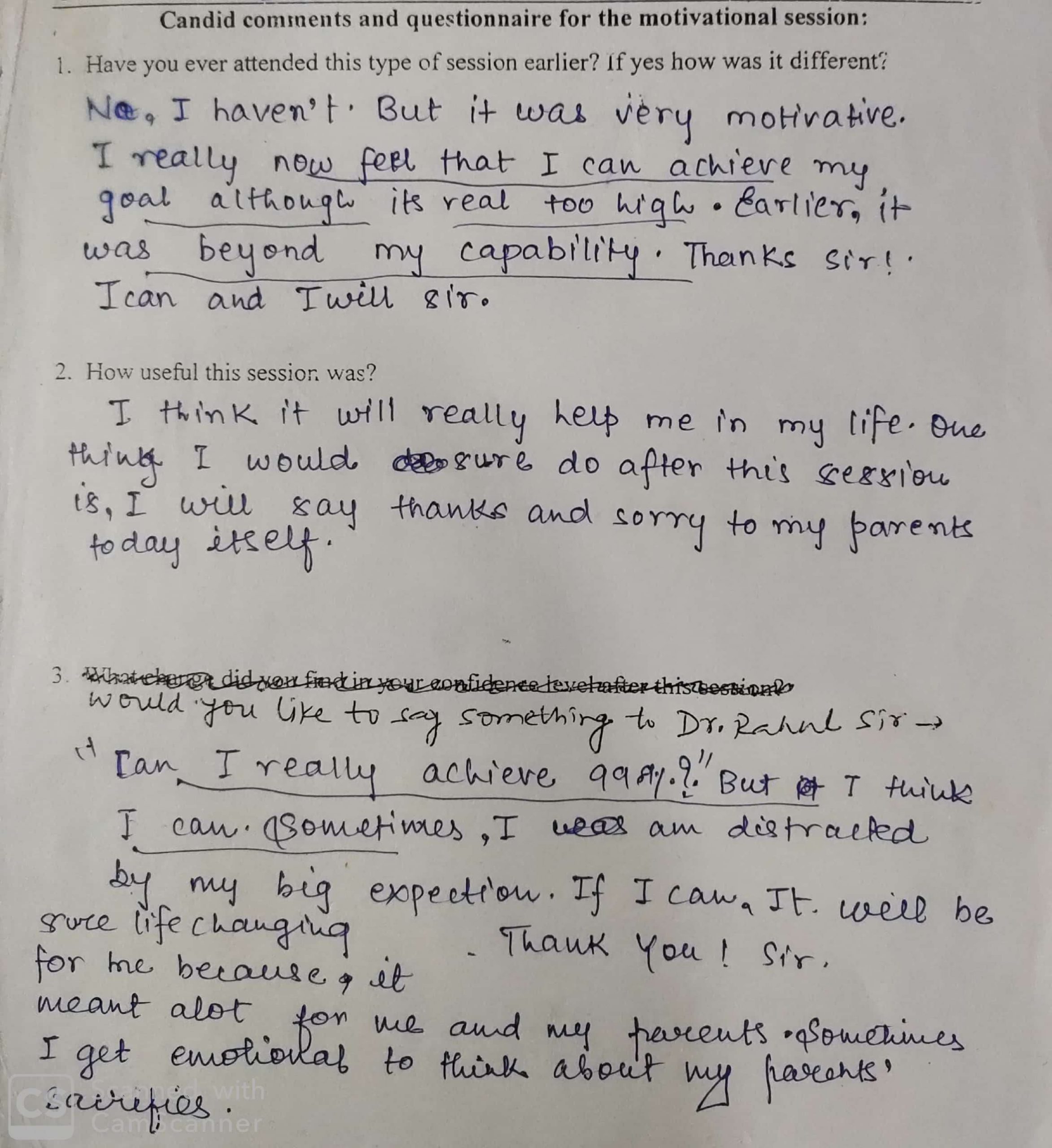 To get outstanding Marks in Board Exam and to get success in the Exam like MEDICAL and IIT , it is very necessary for the students to remain motivated from the very first day of preparation till the last moment of examination.We help students to imbibe psychology of successful Students so that each and every student remain motivated throughout their preparation and get excellent marks in their respective Board Exam ,NEET and IIT entrance exam.