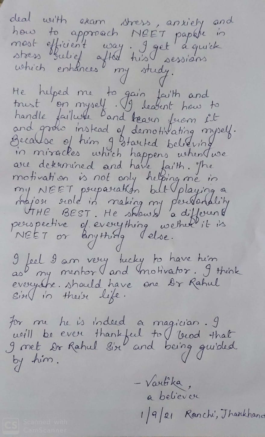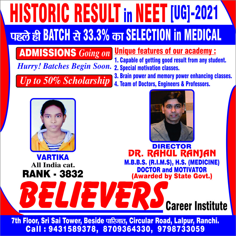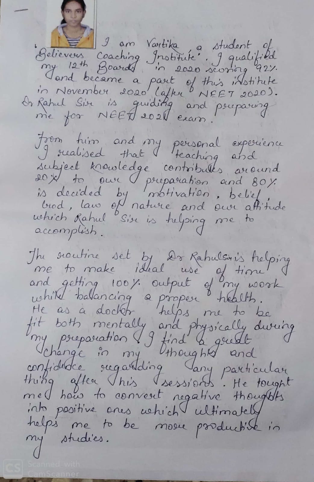 To get outstanding Marks in Board Exam and to get success in the Exam like MEDICAL and IIT , it is very necessary for the students to remain motivated from the very first day of preparation till the last moment of examination.We help students to imbibe psychology of successful Students so that each and every student remain motivated throughout their preparation and get excellent marks in their respective Board Exam ,NEET and IIT entrance exam.