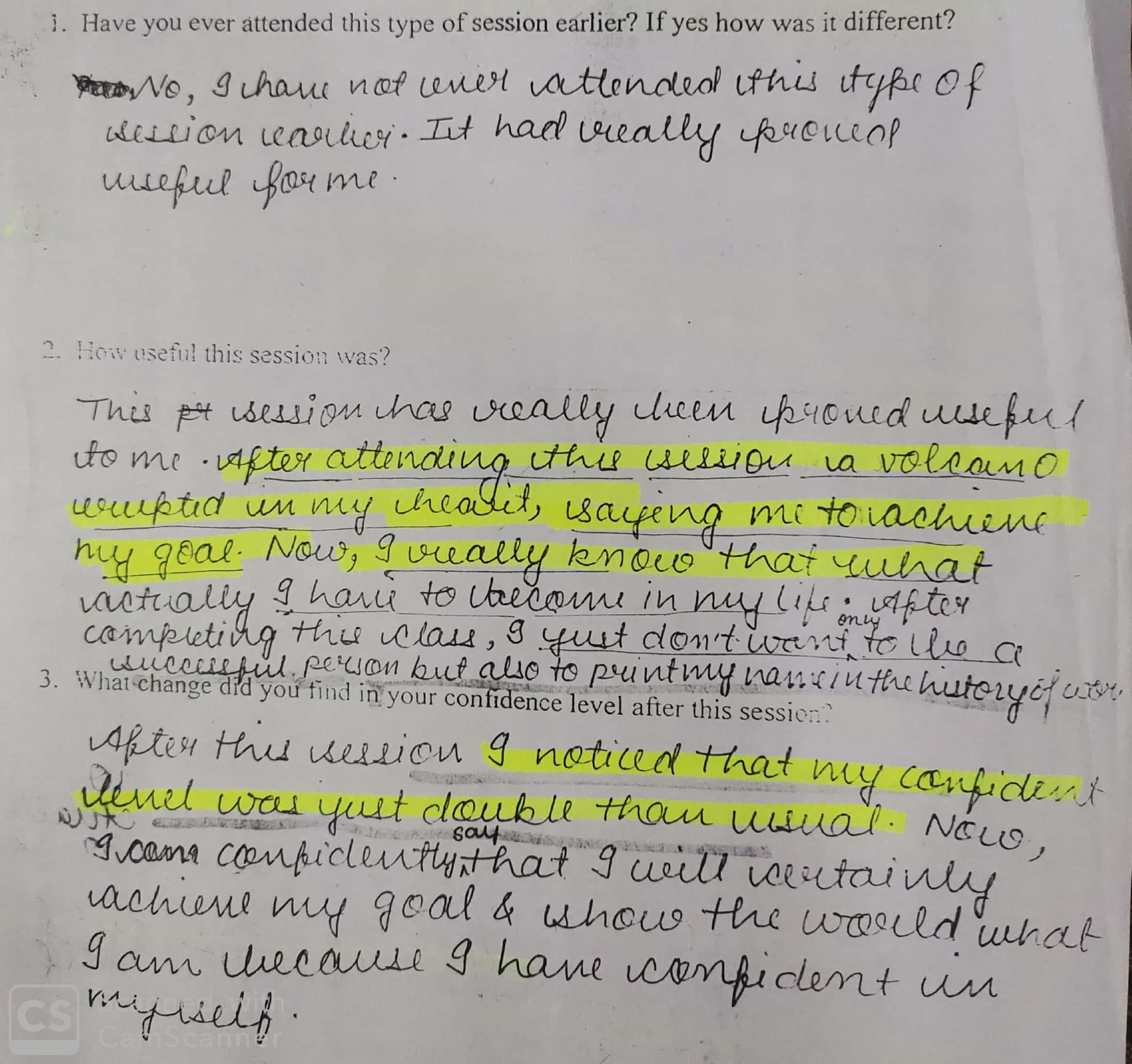9.Shreya -initially not focused but after the session got focused on Study.